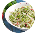 (Картофель, морковь, колб.вар., куриное яйцо, огурец, горошек зел., лук репч., майонез, зелень )